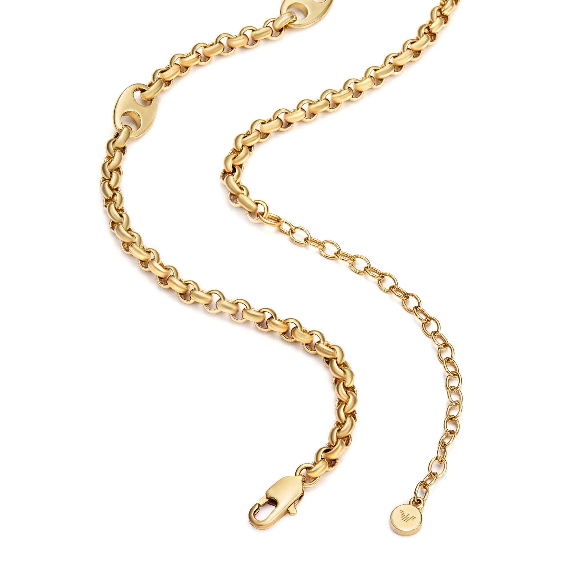 Polished gold-tone brass links create the distinctive station design of this Emporio Armani necklace. The Marina Link silhouette is both refined and modern, with a lobster clasp for secure wear. Each station showcases thoughtful craftsmanship, balancing clean lines and subtle shine for a look rooted in understated sophistication.