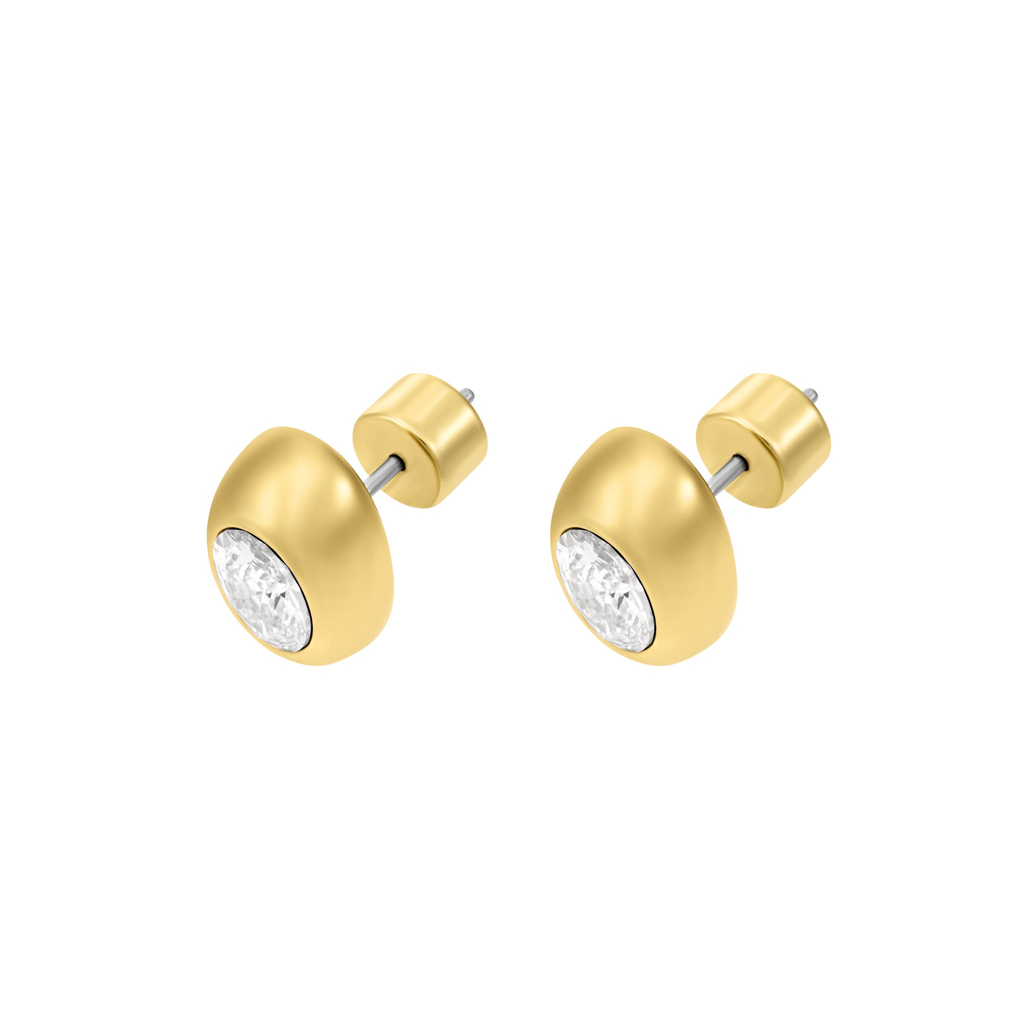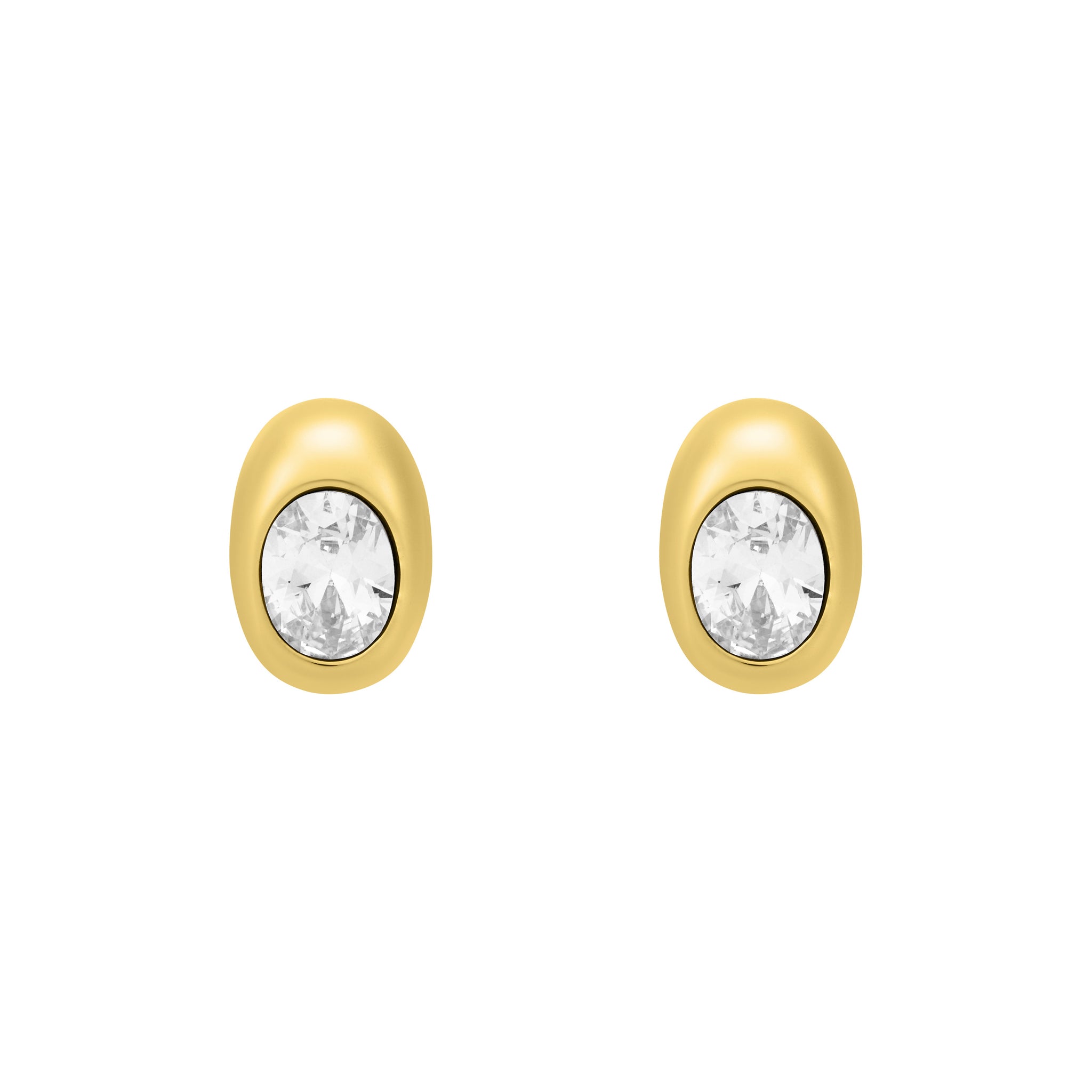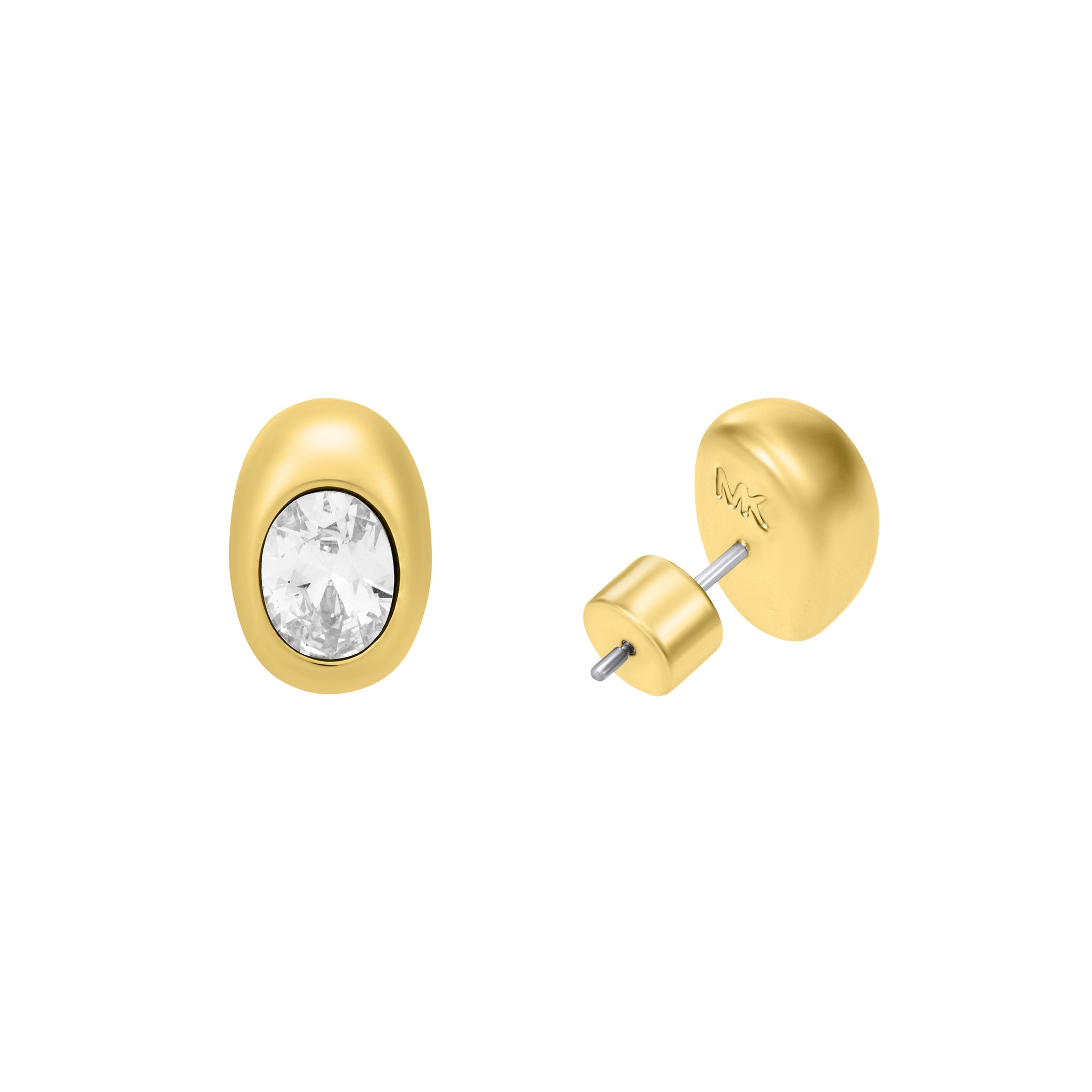 Complete your ensemble with the exquisite charm of our Kors Brilliance collection, a true testament to understated luxury. These stunning stud earrings features a clear oval cut cubic zirconia stone set in a modern bezel. Designed with comfort and style in mind, these will be your new daily go-to's.