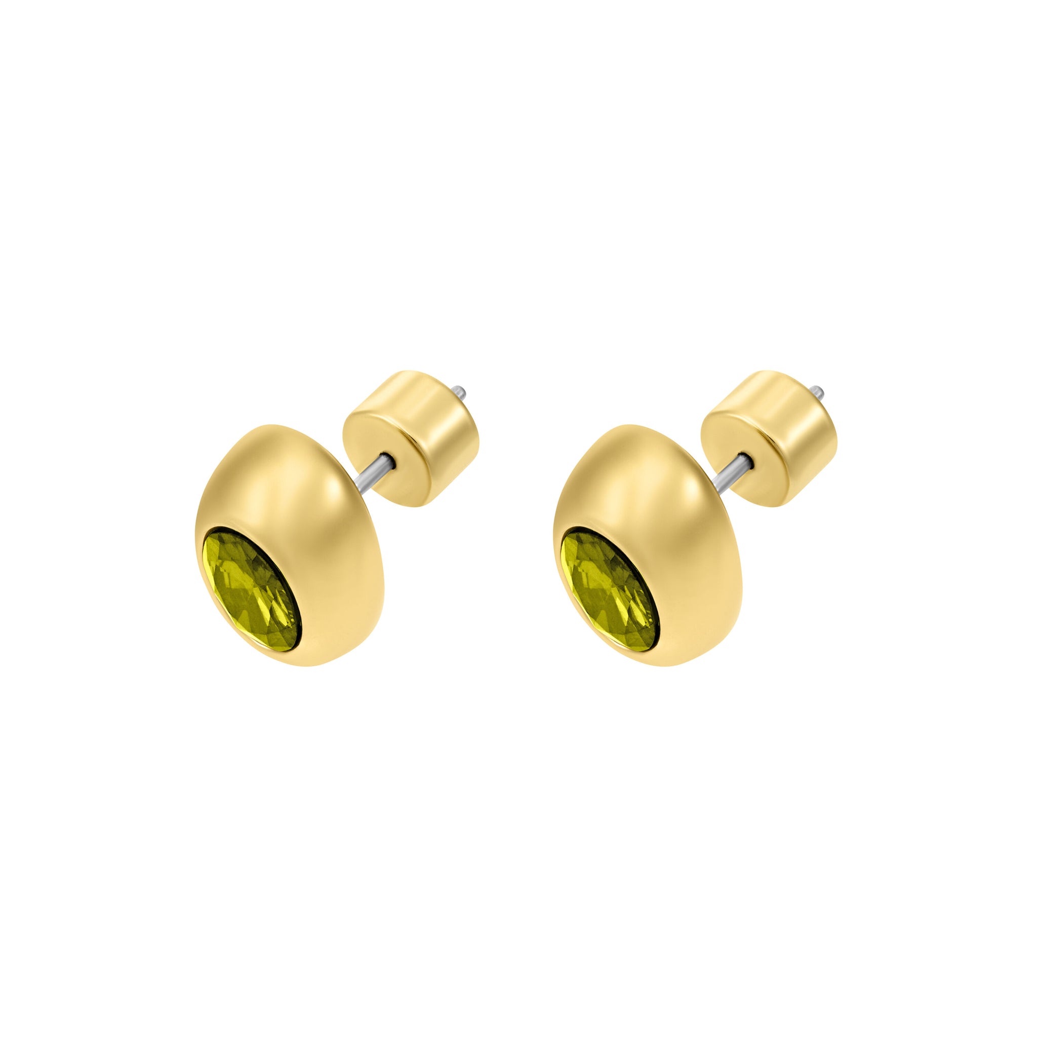 Complete your ensemble with the exquisite charm of our Kors Brilliance collection, a true testament to understated luxury. These stunning stud earrings features a peridot colored oval cut cubic zirconia stone set in a modern bezel. Designed with comfort and style in mind, these will be your new daily go-to's.