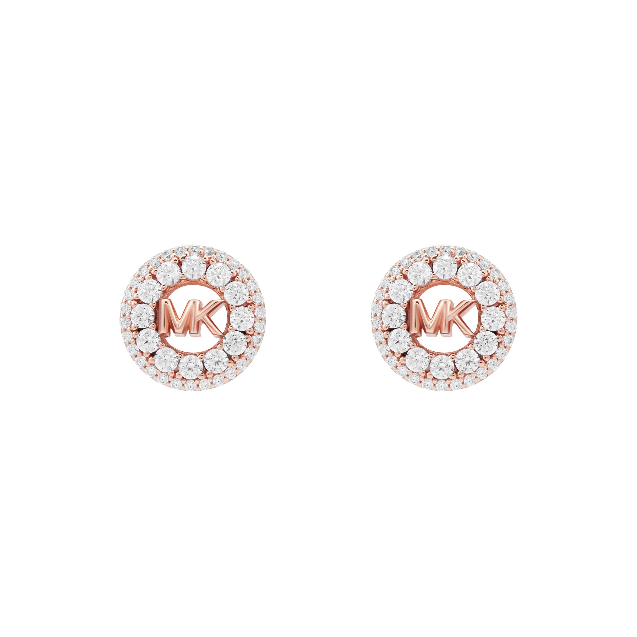 The Kors MK collection of jewelry celebrates Michael's life and work, with the signature MK logo featured as a core design element. Crafted from sterling silver and plated in 14k Rose Gold, these earrings combines the classic logo with radiant shimmer. Pair it with the matching necklace for a cohesive ensemble.