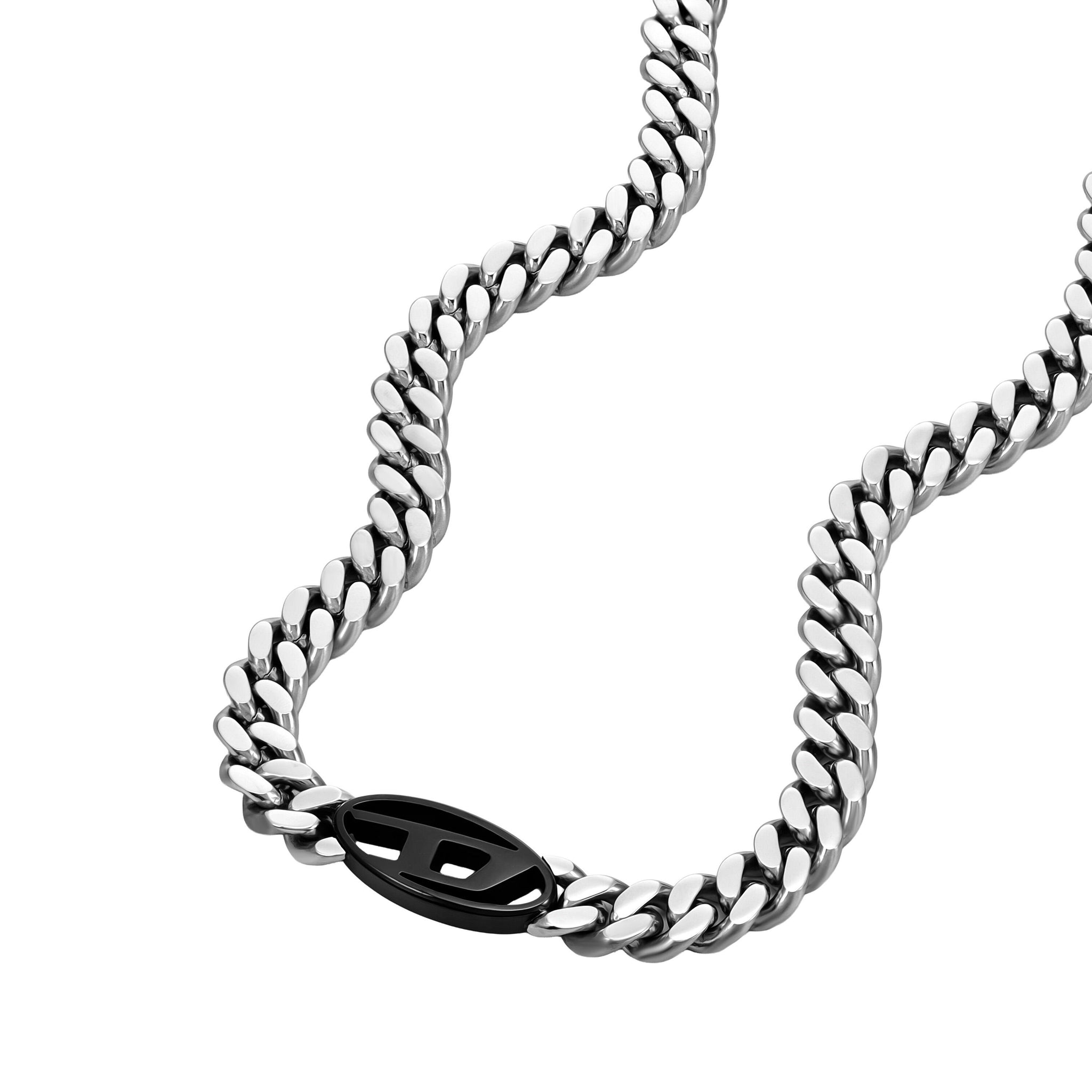 Diesel's two-tone chain necklace features a stainless steel silver curb chain and the iconic Oval D logo in black.