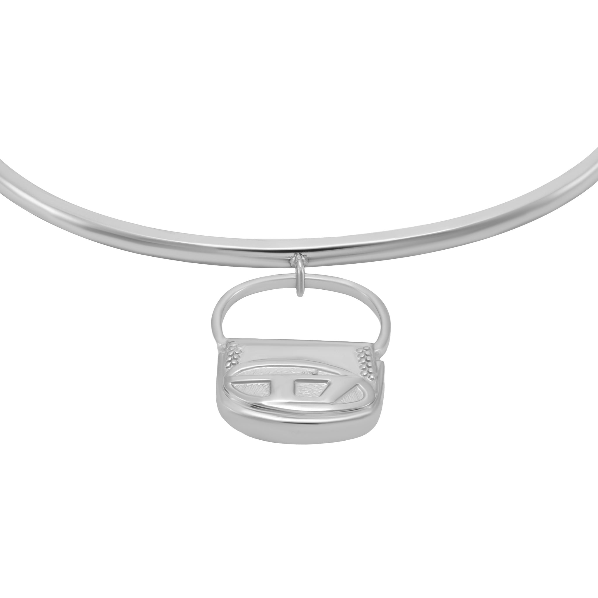 Diesel's silver charm cuff bracelet features stainless steel a charm modeled around the iconic 1D bag charm.