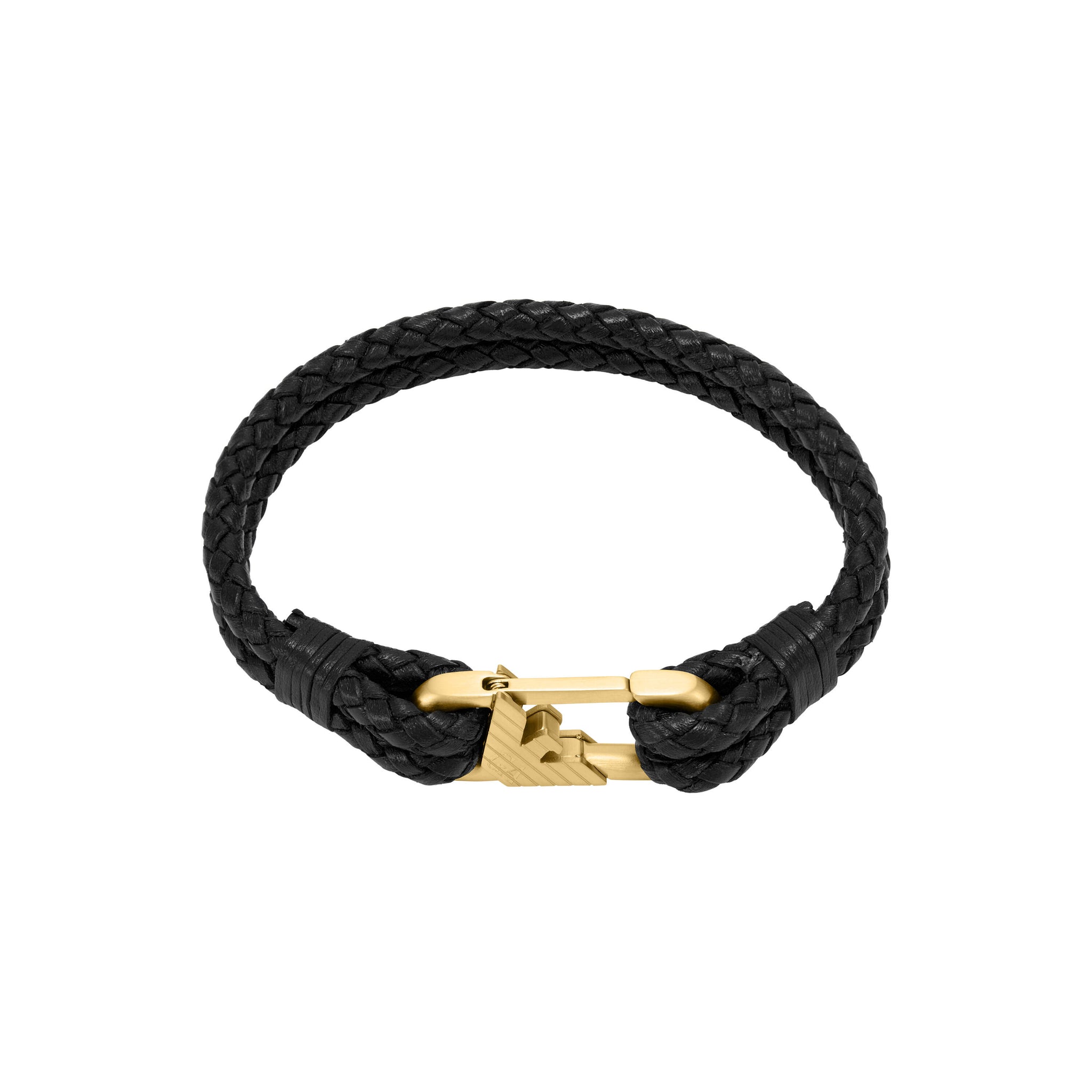 Gold-tone accents and rich leather combine in this Emporio Armani ID bracelet for a polished, modern look. The sleek leather strap features a subtle sheen finish and is secured with a charm clip closure for easy wear. Minimal yet refined, it incorporates signature craftsmanship for understated sophistication.